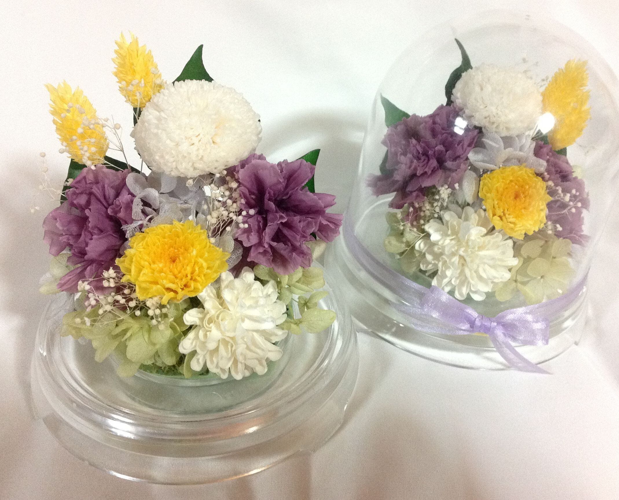 プリザーブドフラワーの菊やカーネーションを中心にアレンジしました。