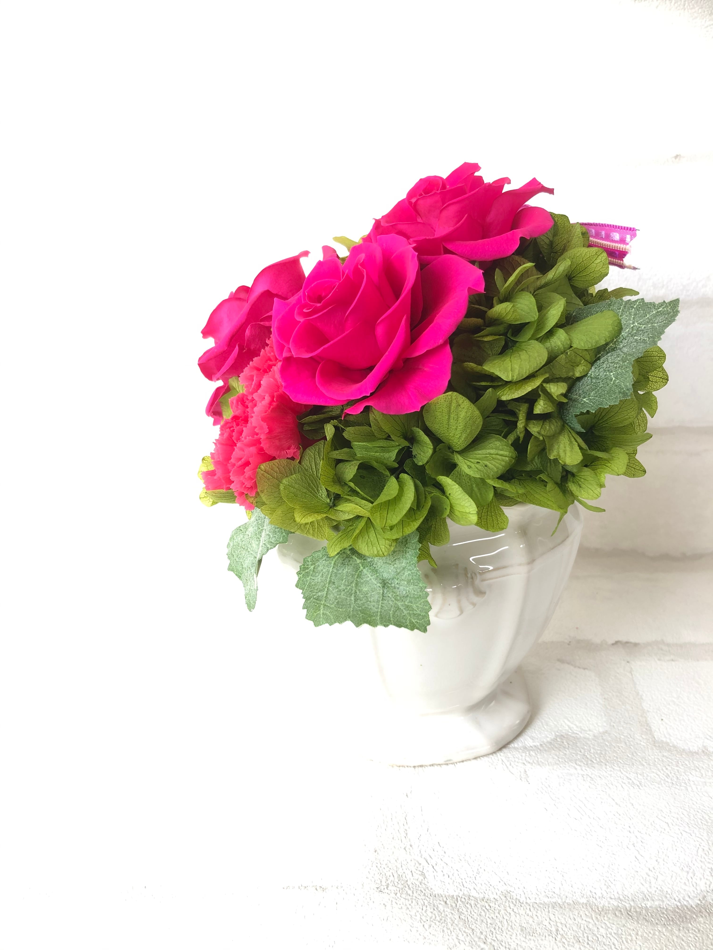 バラ3輪・カーネーション・あじさい・アイスランドモス(プリザーブドフラワー)